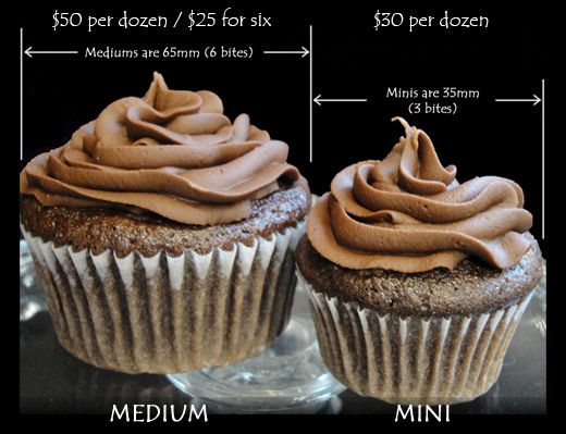 Cupcakes come in two sizes Medium and Mini.